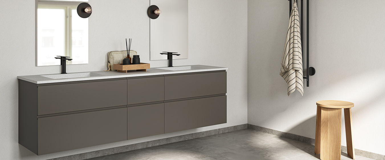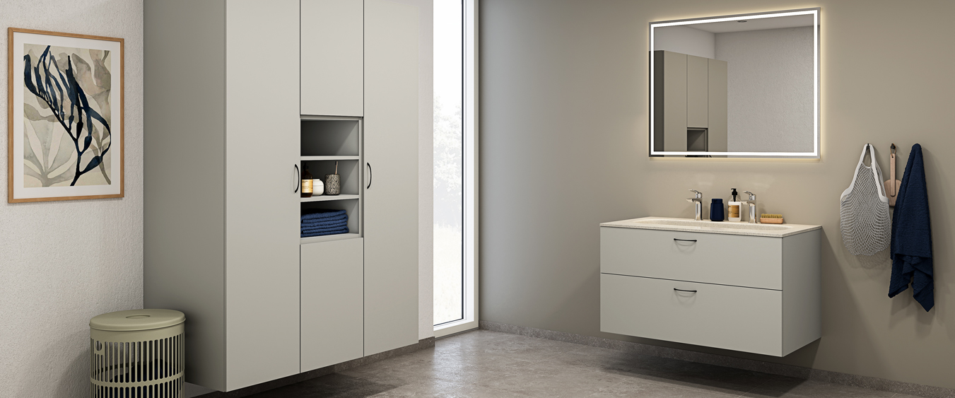 *Vejl. pris ekskl. vask/bordplade, armatur, spejl, bundventil, belysning og styling.