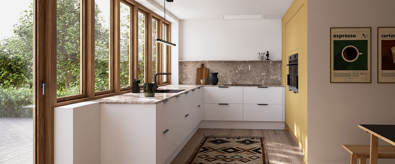 Med Paris serien får du et væld af muligheder. Den glatte enkelte front kan sammensættes med mange forskellige greb, bordplader og der med skifte udsende og stemning.